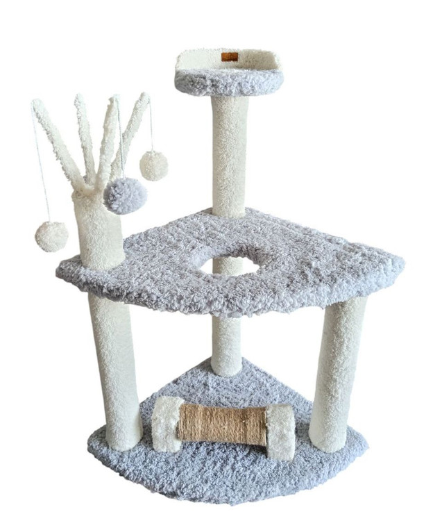 این درخت گربه به همراه پارچه تدی نرم و طراحی شیک، نخ کنفی/مکرومه مقاوم برای اسکرچ، ترکیبی از سرگرمی و راحتی را برای گربه شما فراهم میکند.